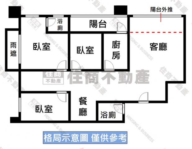 - 格局: 3房(室) 2廳 2衛 1陽台 1廚房