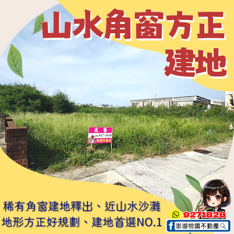 山水角窗方正建地 ★澎湖房地產★土地房屋買賣租賃
