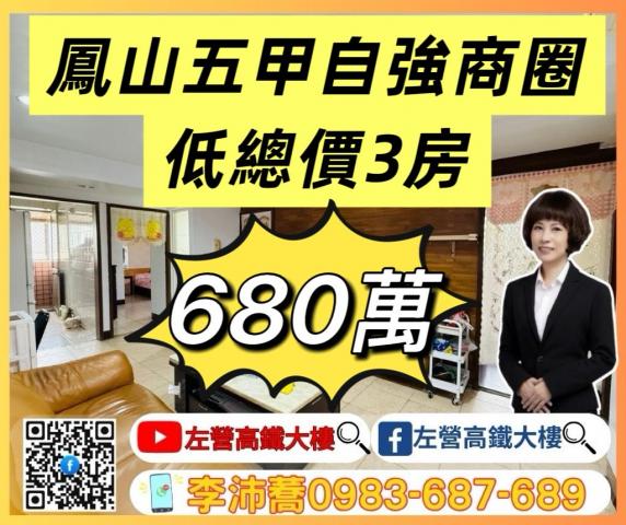左營高鐵大樓鳳山五甲自強商圈三房有車位可停