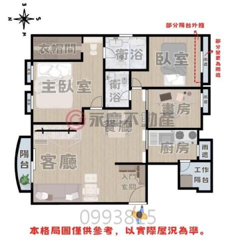 - 格局: 3房(室) 2廳 2衛 2陽台