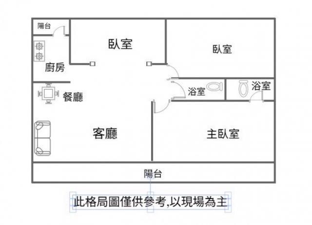 - 格局: 3房(室) 2廳 2衛 2陽台 1廚房