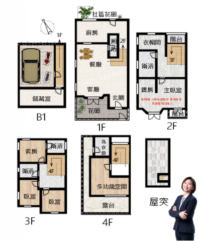 - 格局: 4房(室) 3廳 3衛
