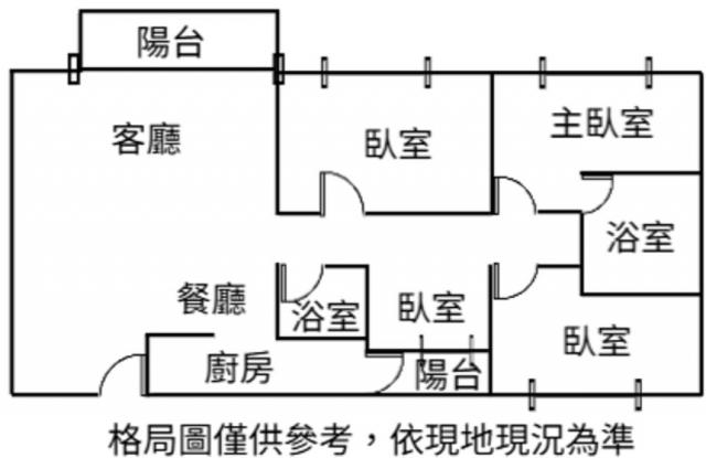 - 格局: 4房(室) 2廳 2衛 2陽台 1廚房