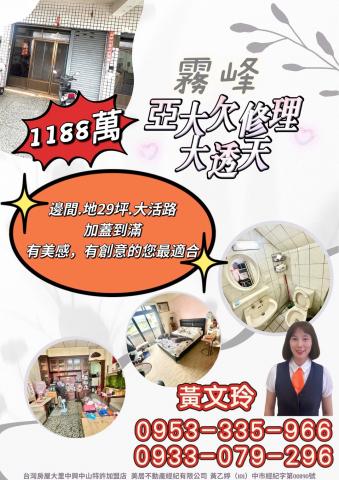 大里房屋推薦 黃文玲 0953-335-966