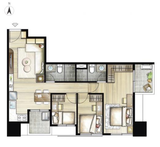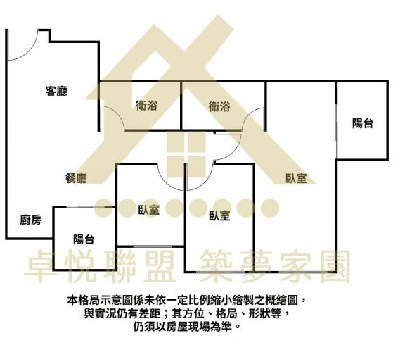 - 格局: 3房(室) 2廳 2衛 2陽台 1廚房
