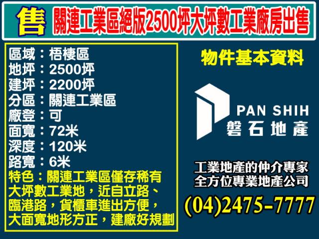 關連工業區|絕版2500坪|大坪數工業地出售