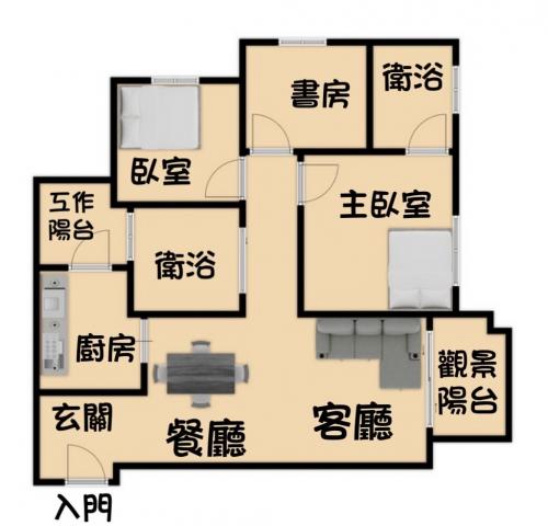 - 格局: 3房(室) 2廳 2衛