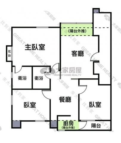 - 格局: 3房(室) 2廳 2衛 1陽台 1廚房