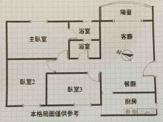 - 格局: 3房(室) 2廳 2衛 1陽台 1廚房