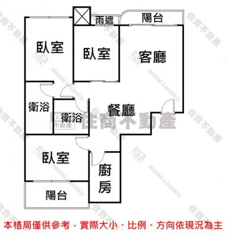 - 格局: 3房(室) 2廳 2衛 2陽台