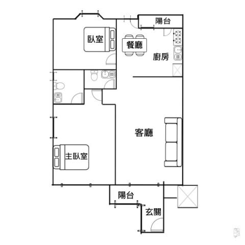 - 格局: 2房(室) 2廳 2衛 2陽台 1廚房