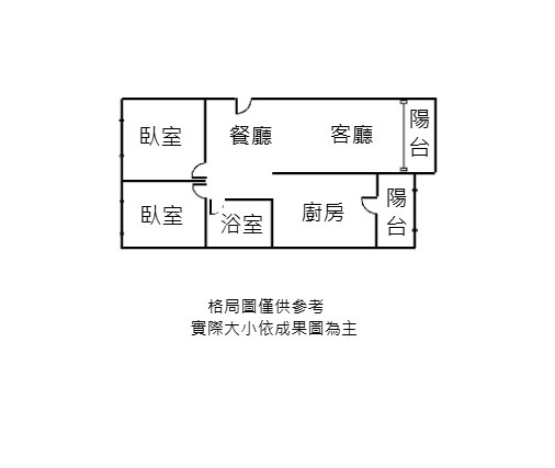 - 格局: 2房(室) 2廳 1衛 2陽台 1廚房