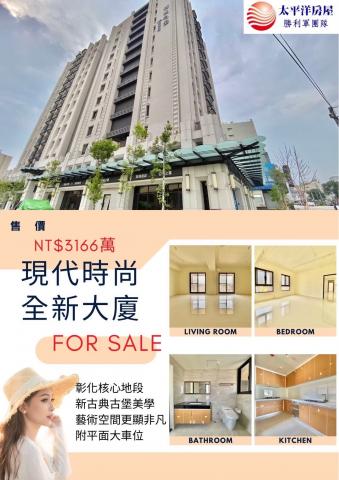 | 優勢 (Strengths) | 1. 地段核心:位於彰化市中正商圈核心,生活機能完善,鄰近民權市場與成功公園,且鄰近平和國小與彰安國中等學區。 2. 居住空間大:屋內坪數達 76.18 坪(含車位),格局為 4 房 2 廳 4 衛,適合大家庭或多世代居住。 3. 新成屋狀態:屋齡僅 3 年,建築為新古典風格,公共設施與安全維護較新,減少後續維修成本。 4. 包含車位:總坪數已包含坡道平面車位,且為雙車位配置,在都會區或新開發區非常實用。 |