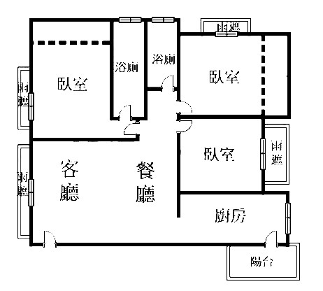 - 格局: 3房(室) 2廳 2衛 1陽台 1廚房