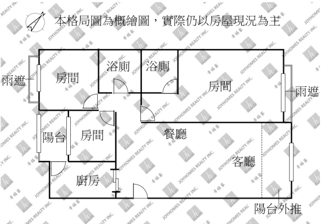 - 格局: 3房(室) 2廳 2衛 1陽台 1廚房