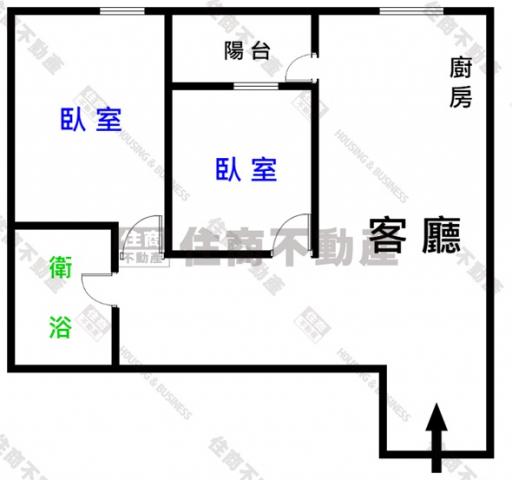 - 格局: 2房(室) 1廳 1衛 1陽台 1廚房