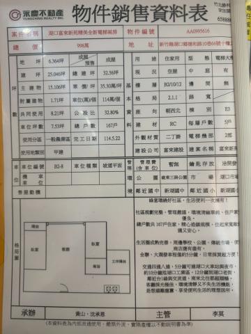 物件資訊內容以登記簿謄本或預售屋買賣契約為準,若有疑問請洽承辦人員。