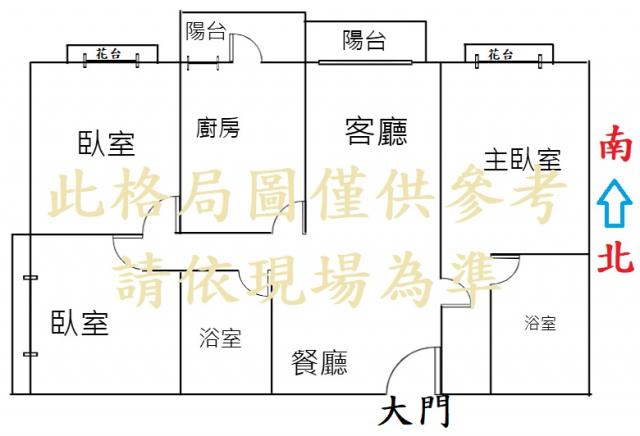 - 格局: 3房(室) 2廳 2衛 2陽台 1廚房