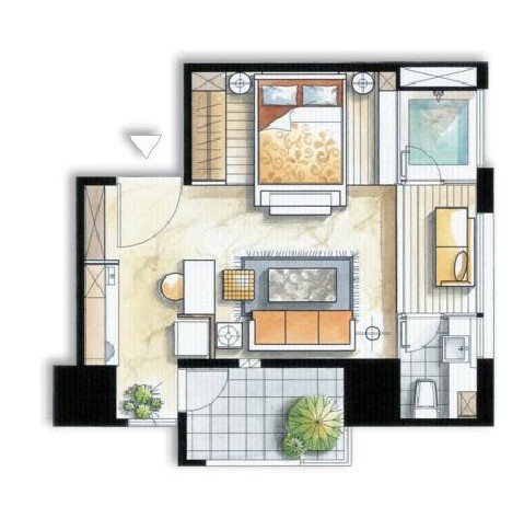 - 格局: 1房(室) 1廳 1衛 1陽台 1廚房