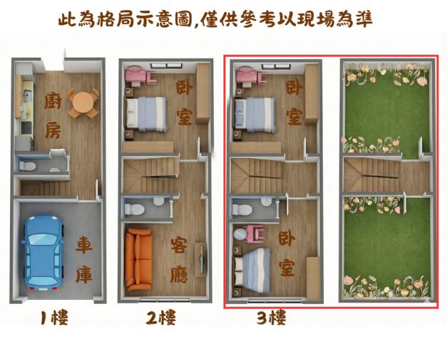 | 4. 格局機能:邊間透天,採光通風佳,規劃 3 房 3 衛,適合家族居住或需求隱私者。 | |