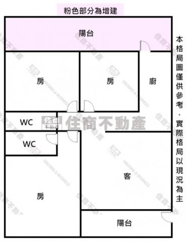 - 格局: 3房(室) 2廳 2衛 1陽台 1廚房