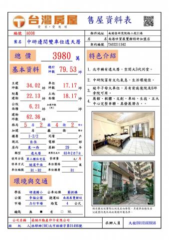物件資訊內容以登記簿謄本或預售屋買賣契約為準,若有疑問請洽承辦人員。