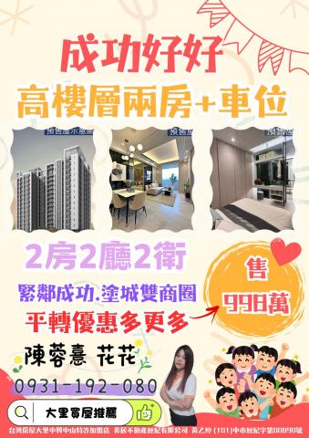 大里買屋推薦 成功好好高樓層兩房+車位