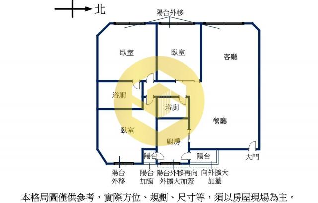 - 格局: 3房(室) 2廳 2衛 2陽台