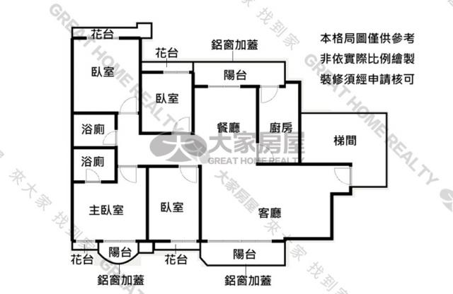 - 格局: 4房(室) 2廳 2衛 3陽台 1廚房