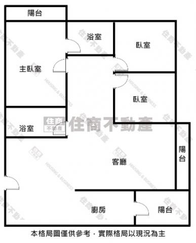 - 格局: 3房(室) 2廳 2衛 2陽台 1廚房