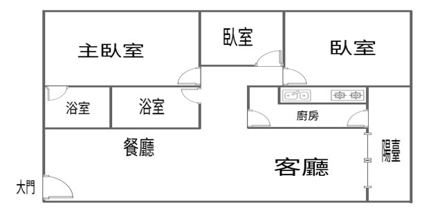- 格局: 3房(室) 2廳 2衛 1陽台 1廚房