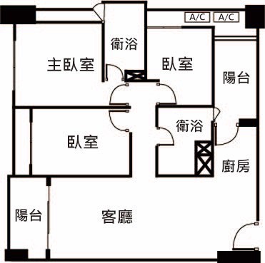 - 格局: 3房(室) 2廳 2衛 2陽台 1廚房