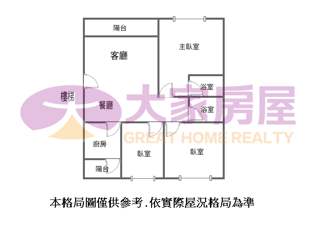 - 格局: 3房(室) 2廳 2衛 2陽台 1廚房