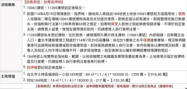 物件資訊內容以登記簿謄本或預售屋買賣契約為準,若有疑問請洽承辦人員。