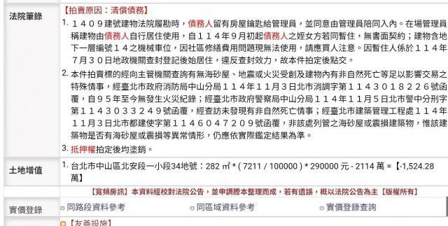 物件資訊內容以登記簿謄本或預售屋買賣契約為準,若有疑問請洽承辦人員。