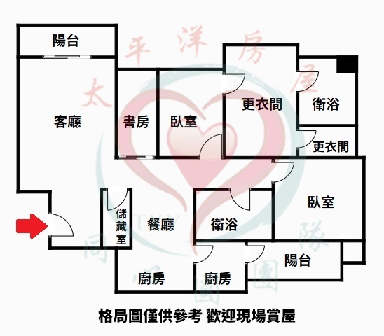 - 格局: 3房(室) 2廳 2衛 2陽台 1廚房