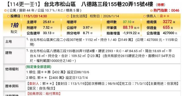 台北法拍專家 台北市南港區舊莊路一段290巷3弄12號2樓