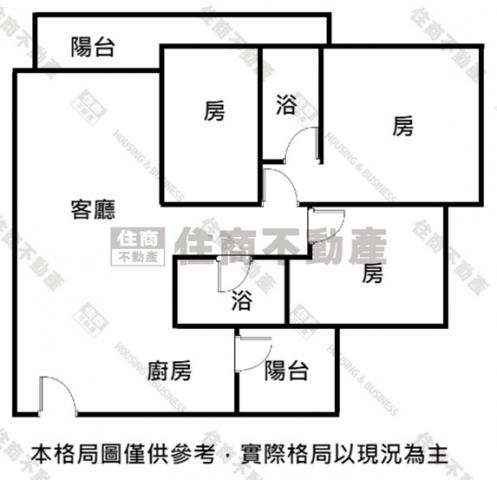 - 格局: 3房(室) 2廳 2衛 2陽台 1廚房