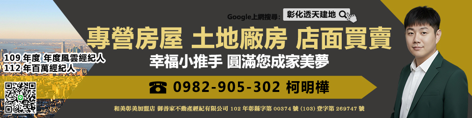 彰化透天建地 柯明樺 0982905302 109年度 年度風雲經紀人員 112年百萬經紀人員