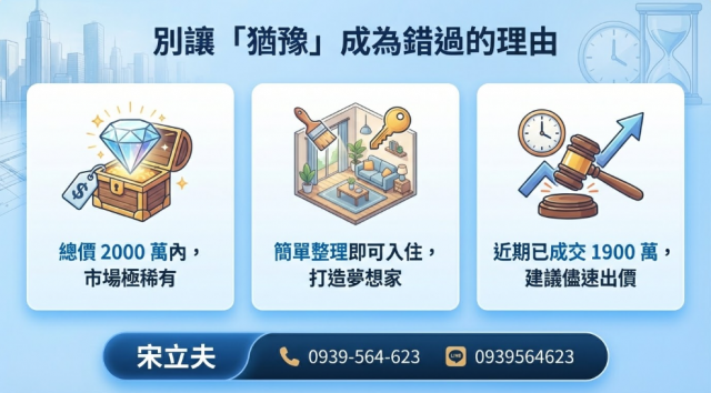 如果您對不動產有任何疑問或需求,歡迎隨時聯繫我。我期待能成為您信賴的夥伴,共同打造理想的生活空間!讓我們一起開始這段旅程吧!