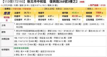 物件資訊內容以登記簿謄本或預售屋買賣契約為準,若有疑問請洽承辦人員。