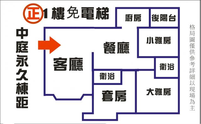- 格局: 3房(室) 2廳 2衛 1陽台 1廚房