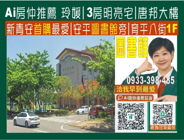 圖書館<唐邦>正1樓3面採光3房大住家~Ai房仲推薦玲媛~