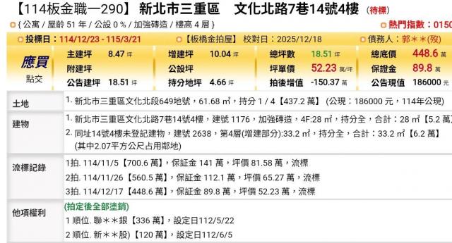 台北法拍專家 新北市三重區中華路1號8樓