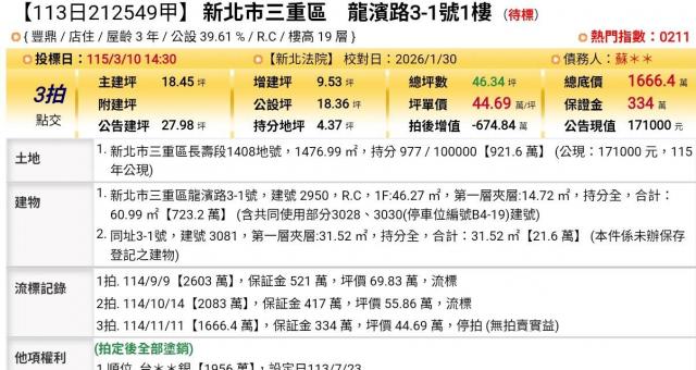 台北法拍專家 新北市三重區成功路145巷26號5樓
