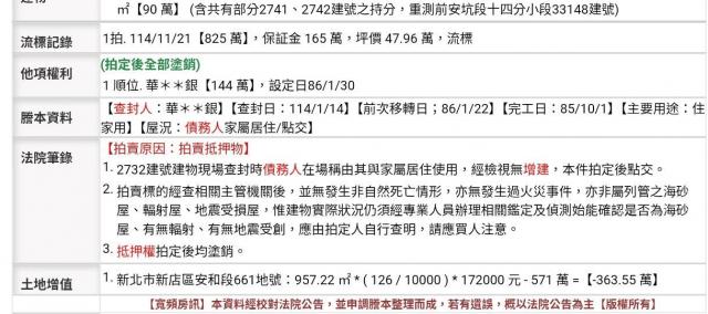 物件資訊內容以登記簿謄本或預售屋買賣契約為準,若有疑問請洽承辦人員。