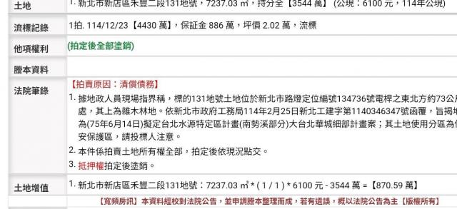 台北法拍專家 新北市新店區禾豐二段131地號