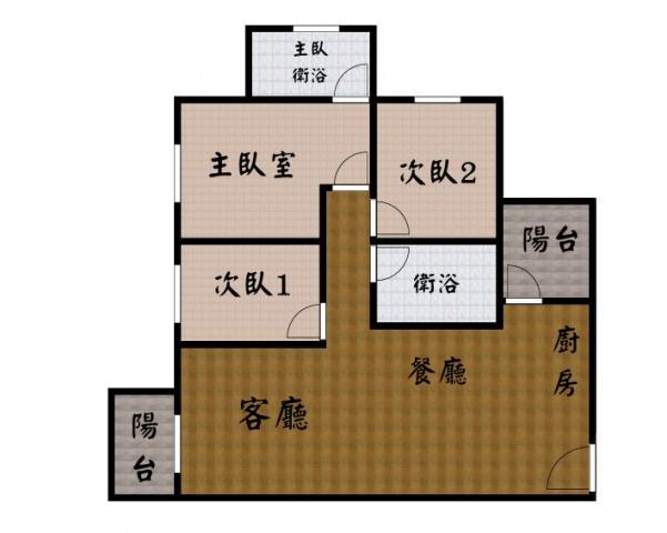 - 格局: 3房(室) 2廳 2衛 2陽台 1廚房