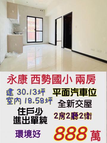 南科買房買地 永康西勢國小全新兩房+平車