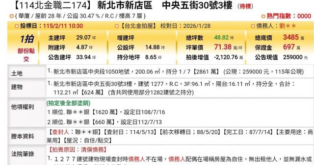 台北法拍專家 新北市五股區五福路36號3樓